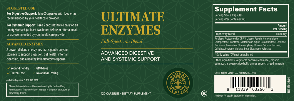 Ultimate Enzymes: Take two capsules twice daily at the beginning of a meal.