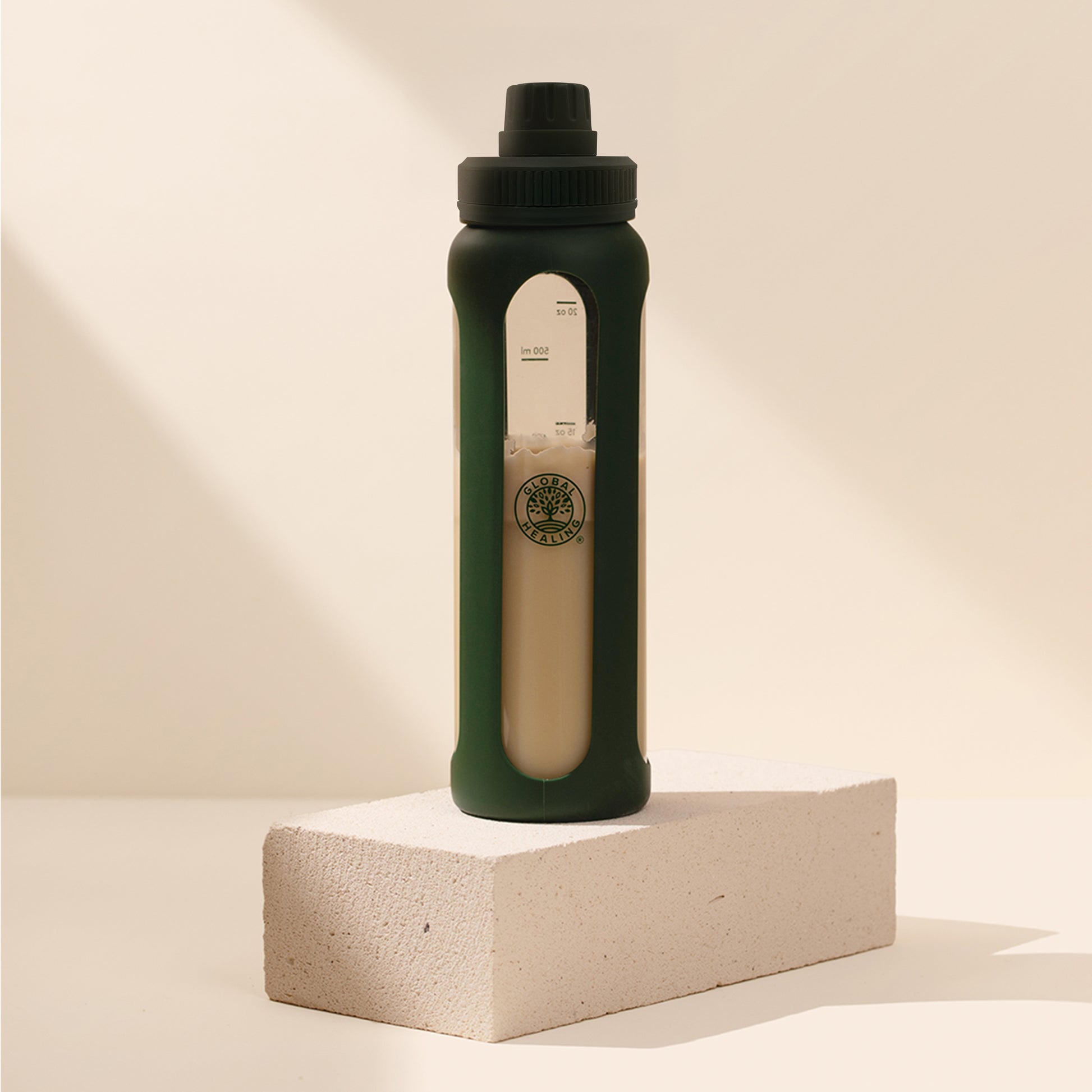 Mix your supplements the clean way with our Glass Shaker Bottle. Made from durable glass with a protective silicone grip, it keeps flavors pure, free from plastic aftertaste, and easy to handle. Measurement markings ensure accuracy for smoothies, protein blends, or supplements, while the sleek green sleeve adds style and sustainability to your wellness routine.